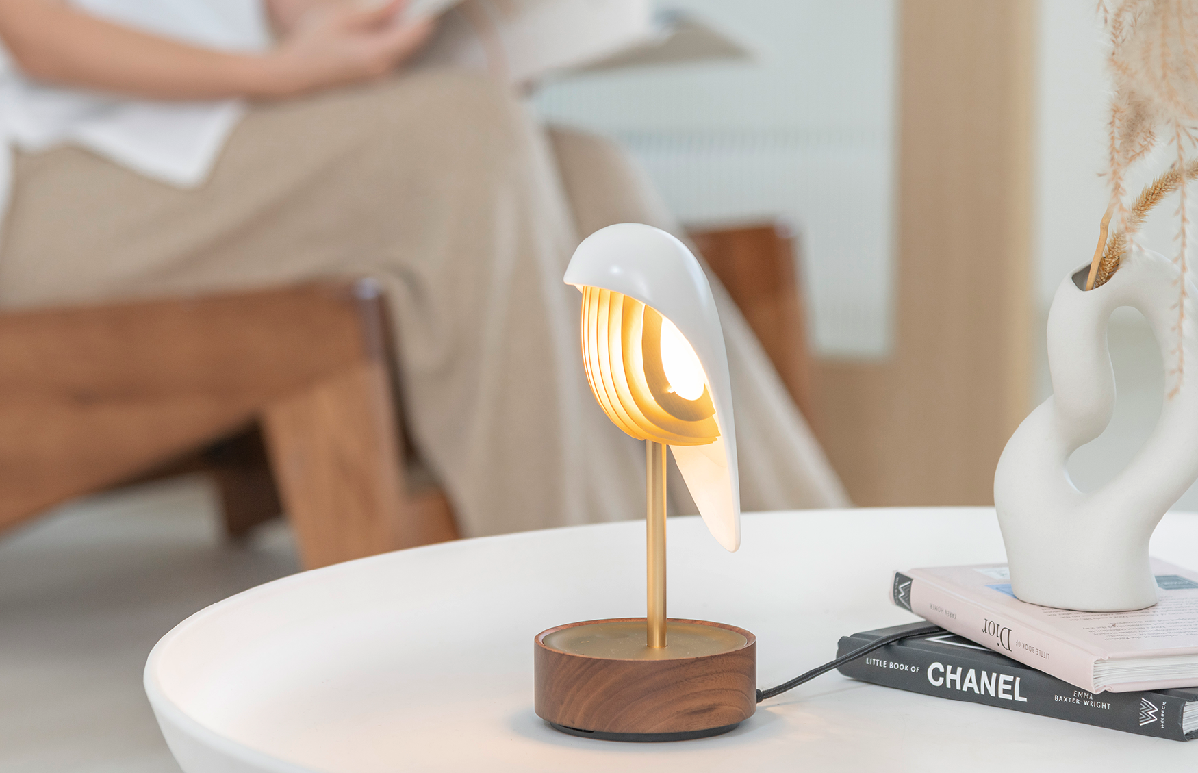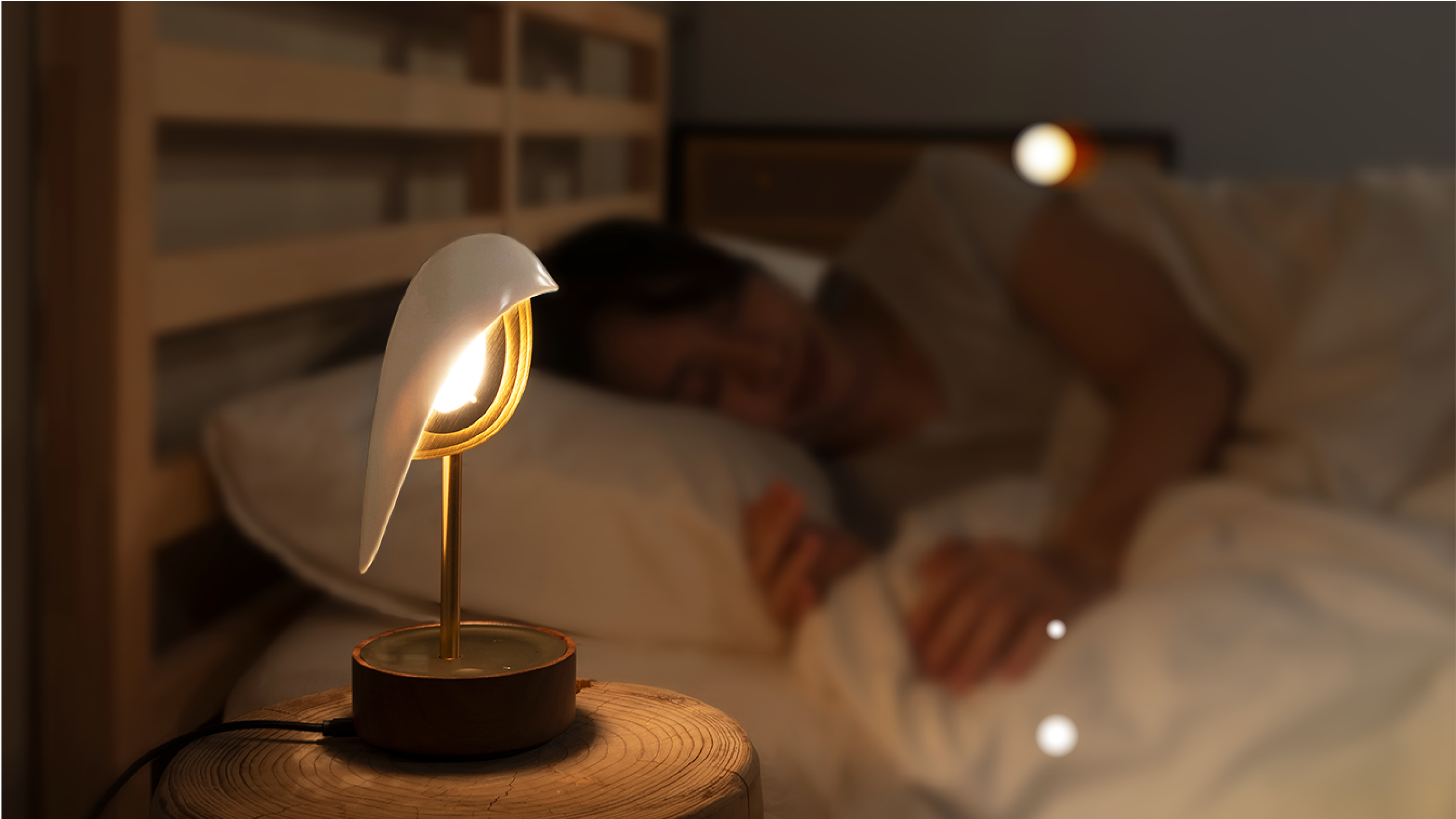【 WHISPER 靜眠燈 】是曾獲設計大獎肯定的鳥燈系列最新作品。這次,我們將自然療癒音放入燈具,讓您隨時可踏入仿自然的環境。在夜幕深垂時、在感到不安時、在感到焦慮時,能夠在聲音的陪伴下,緩緩獲得平靜與自在,甚至睡得更深。